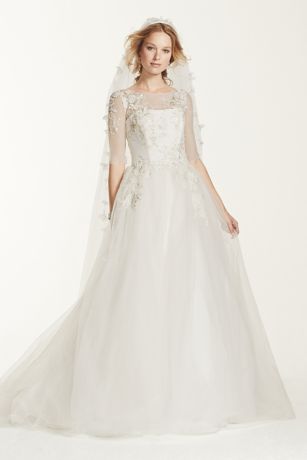 Lace Appliqued Tulle A Line Wedding Dress David S Bridal