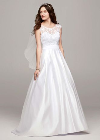 Cap Sleeve A Line Gown With Illusion Neckline David S Bridal