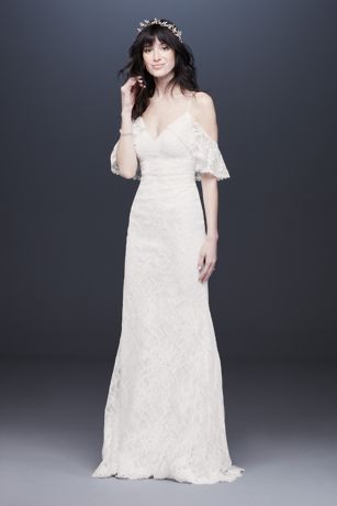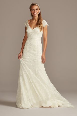 Chantilly Lace Cap Sleeve Sheath Wedding Dress David S Bridal