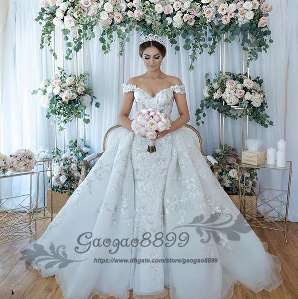 Luxury Detachable Train Wedding Dress 2019 Arabic Patterns