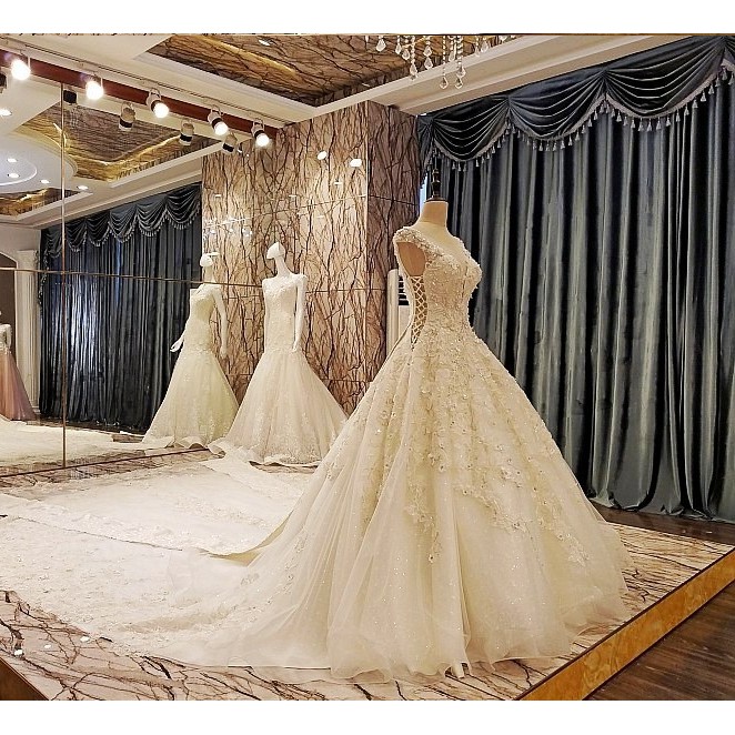 Bridal Gowns Cape Sleeves Flower Wedding Gowns With Long Tail