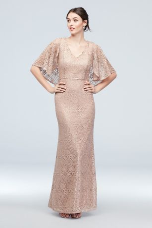 Embroidered Lace Cape Sleeve Gown Le Chateau
