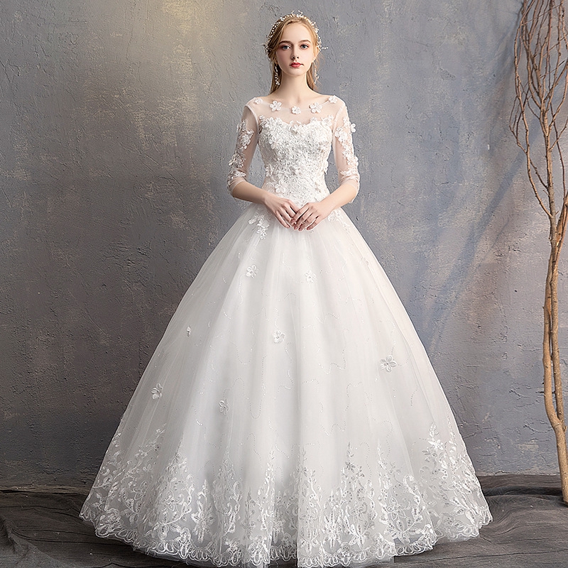 Noble Flower Lace Floor Length Wedding Dress Classic Princess