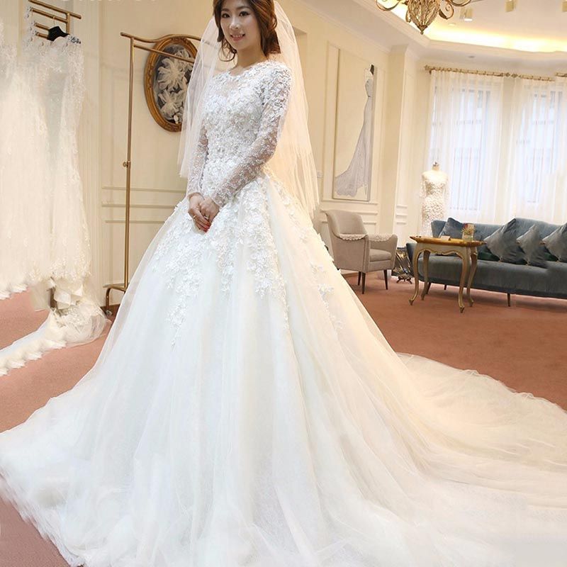 Stunning Long Sleeves Tulle Wedding Dress With Embroidery Bridal