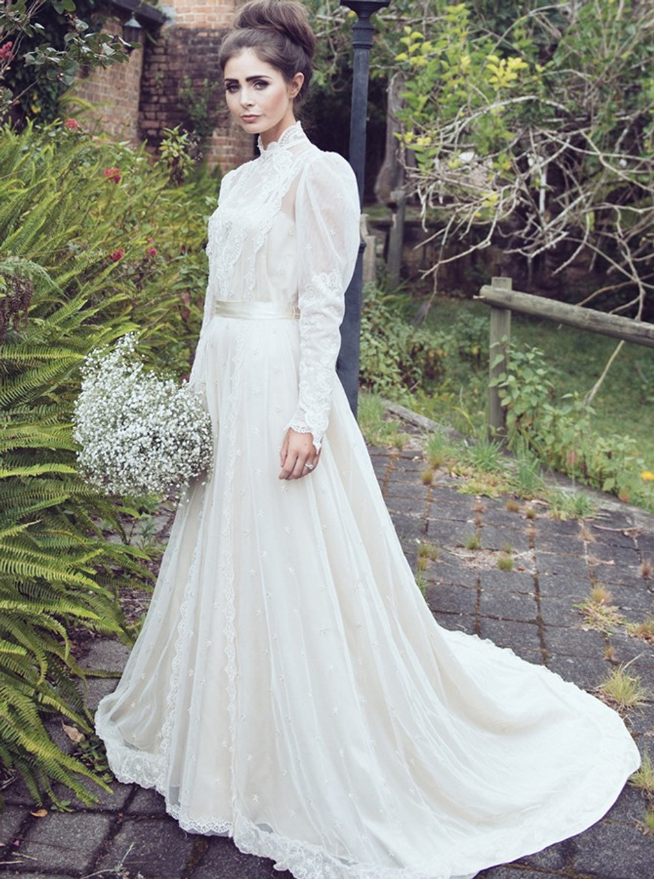 Vintage Wedding Dresses Lace Ivory Bridal Dress Long Sleeve High