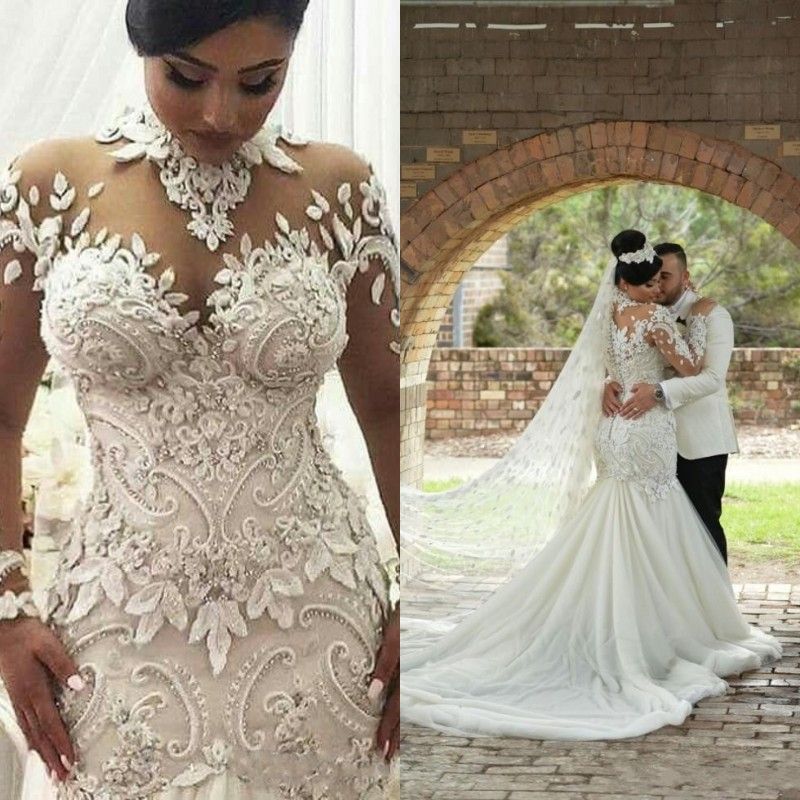 Top Quality 2019 Arabic Bridal Mermaid Wedding Dresses High Neck