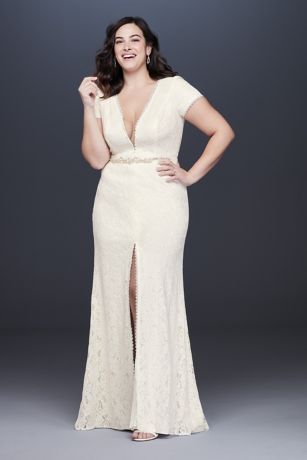 Illusion V Neck Cap Sleeve Plus Size Wedding Dress David S Bridal