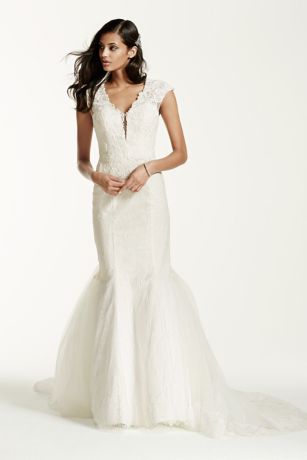 Illusion Deep V Neck Cap Sleeve Lace Wedding Dress David S Bridal