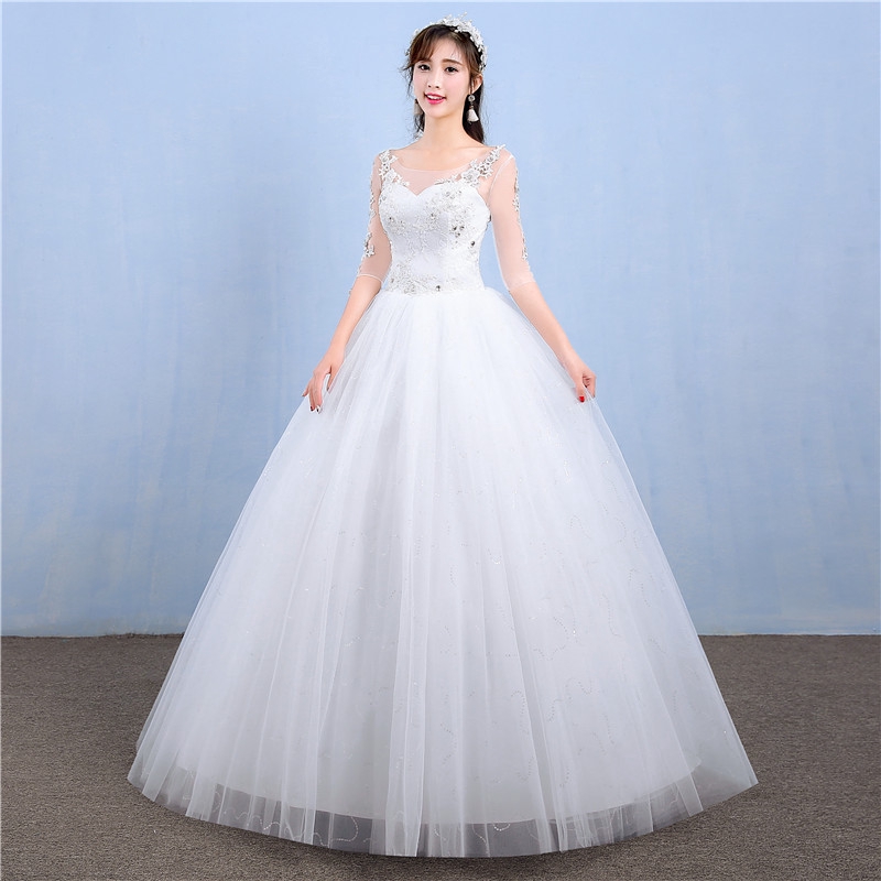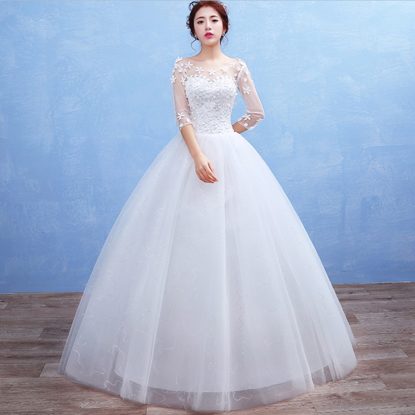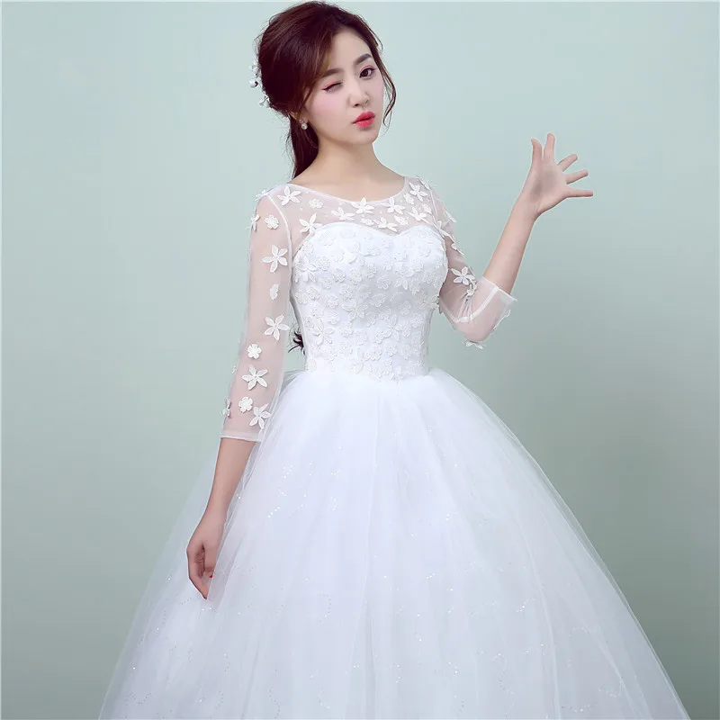 New Style Lace 3 Quarter Wedding Dress Korean Style Simple Chinese