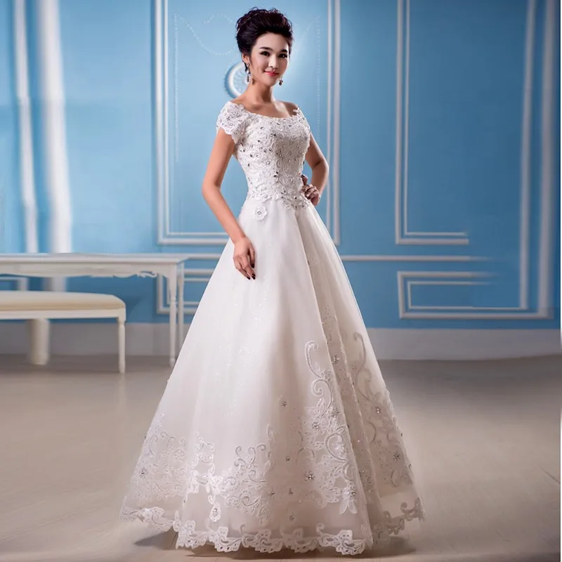 Wedding Dress Design Cap Sleeve Lace Appliqued Crystal Straps Ball