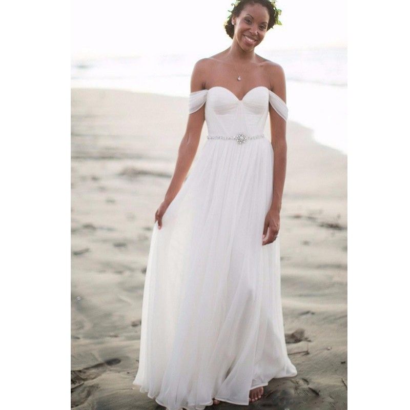 Hot Sexy Beach Chiffon Wedding Dress Sleeveless Off Shoulder Floor