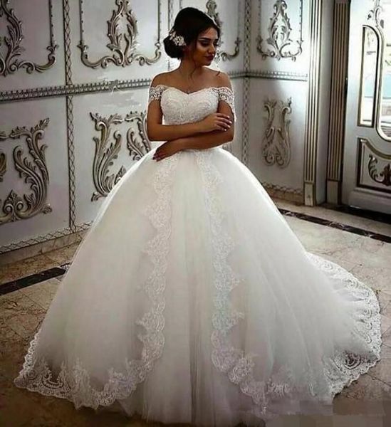 Princess Wedding Dresses Lace Applique Off The Shoulder Saudi