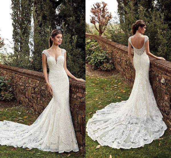 Romantic Capped Sleeves Mermaid Wedding Dresses 2019 Ivory Full