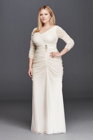 3 4 Illusion Sleeve Wedding Dress With Ruching David S Bridal