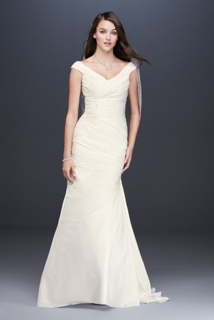 Ruched Taffeta Cap Sleeve Trumpet Wedding Dress David S Bridal