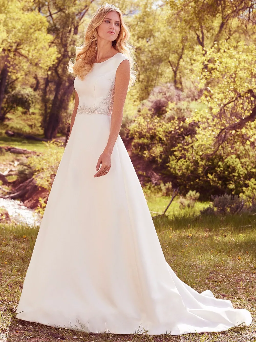 A Line Wedding Dress With Cap Sleeves Satin Wedding Dress Simple