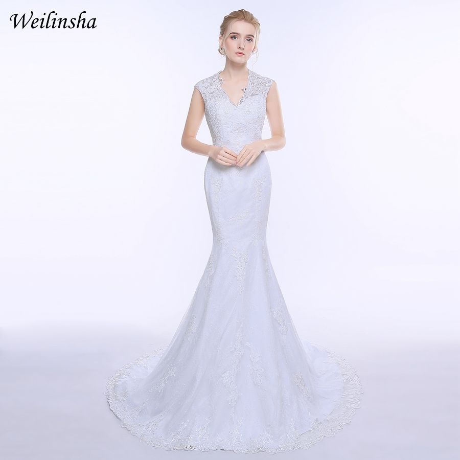 Wholesale New Lace Wedding Dresses Cap Sleeve Applique Open Back