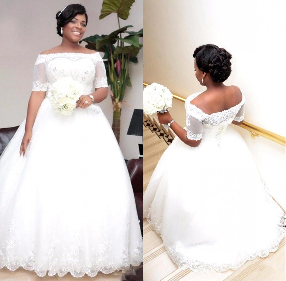 South Africa Elegant Ball Gown Wedding Dresses Nigeria Boat Neck