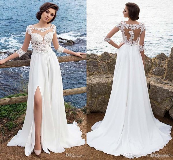 Discount 2019 New Beach Simple Wedding Dresses Scoop Neck Lace