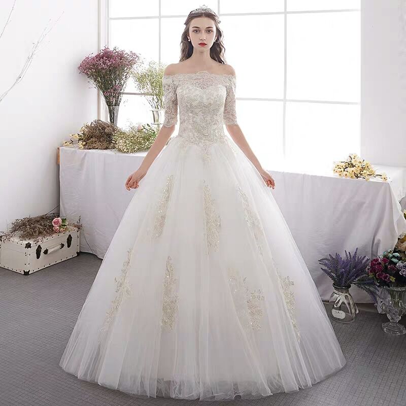 2019 Latest Princess Tulle French Floor Length Off Shoulder Bridal