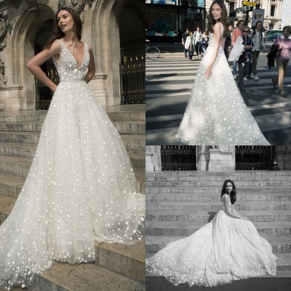 Discount Unique Wedding Dress A Line Star Applique Crystals