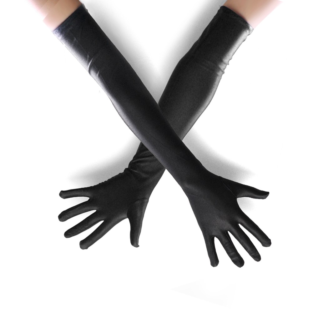 Ladies Long Black Gloves Elbow Stretch Satin Wedding Halloween