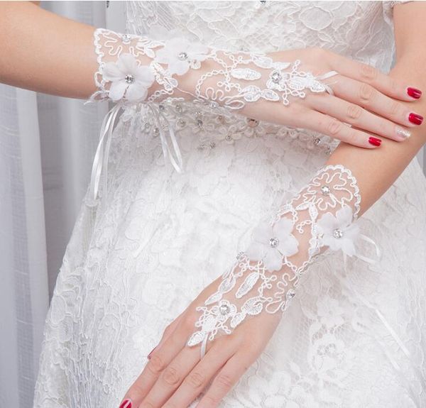 2019 White Finger Wedding Gloves Lace Beaded For Bridal Wedding