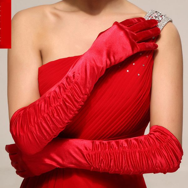 Buy Millennium Bride Red Long Paragraph Fold Satin Gloves Wedding