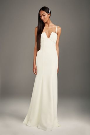 Notch Neck Crepe Gown With Ruffle Inset Train David S Bridal