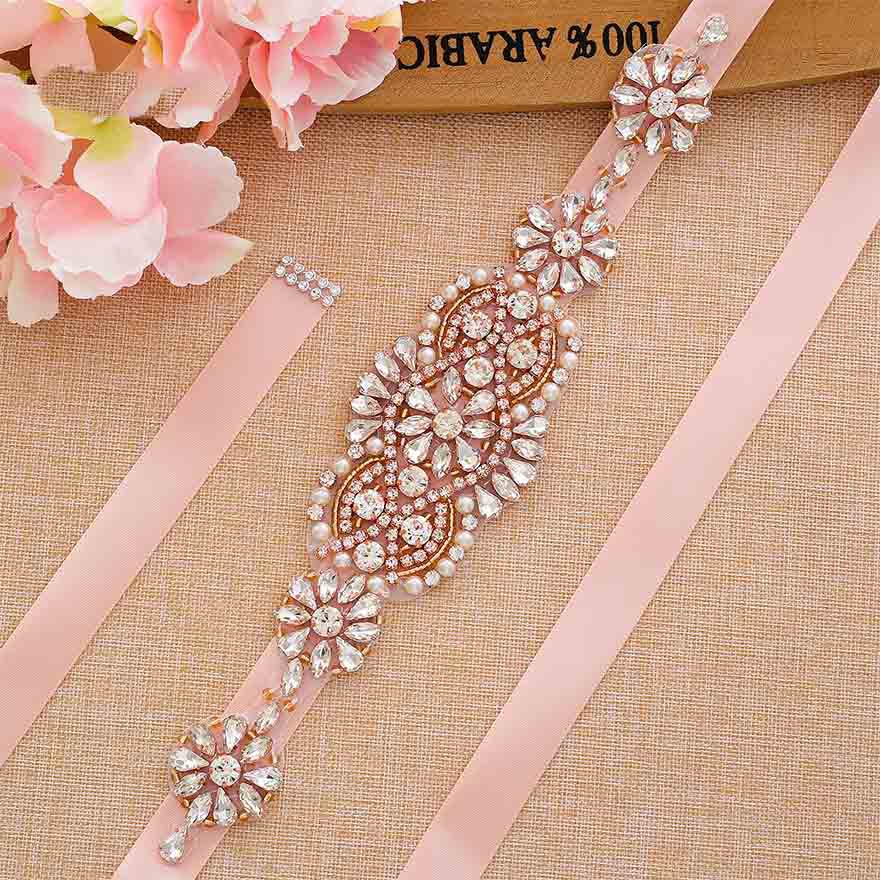 Rose Gold Crystal Rhinestone Bridal Sash Wedding Sash Belts And