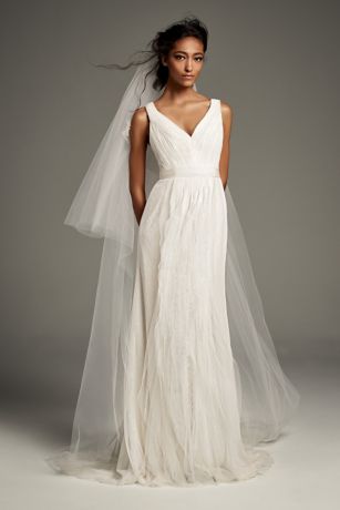 Pleated Tulle Flutter Back Sheath Wedding Dress David S Bridal