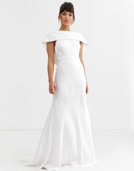 Asos Edition Off Shoulder Maxi Wedding Dress With Drape Back