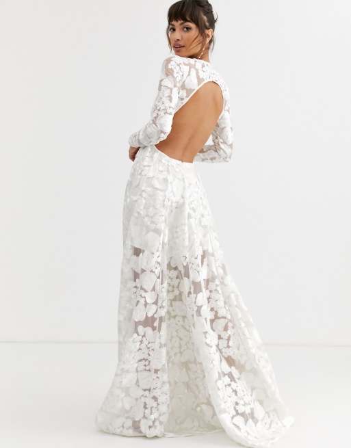 Asos Edition Wedding Dress With Open Back And Floral Embroidery Asos